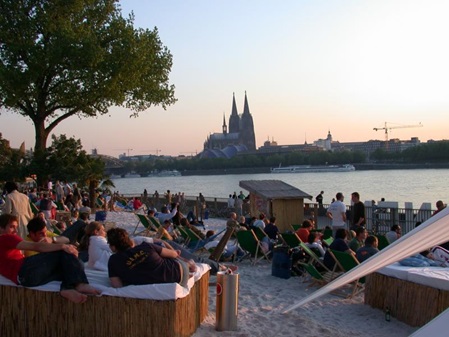 Urlaubs- Feeling in der Heimat. Speziell im Sommer kann man hier die beiden Dinge verbinden, die man sich als Kölner wünscht: Sandstrand und Blick auf den Dom.